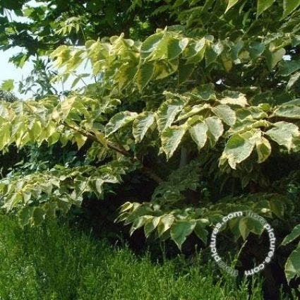 Aralia elata ‘Aureovariegata’ is een mooie solitair voor grote tuinen.