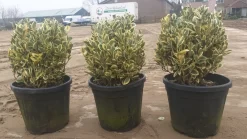 De planten worden geleverd met kluit en zijn verkrijgbaar in verschillende maten (hxlxb). Let hierbij ook op de maten van de kluit en het totaalgewicht van de plant, hou hier rekening mee qua materieel om te verplaatsen en te planten: