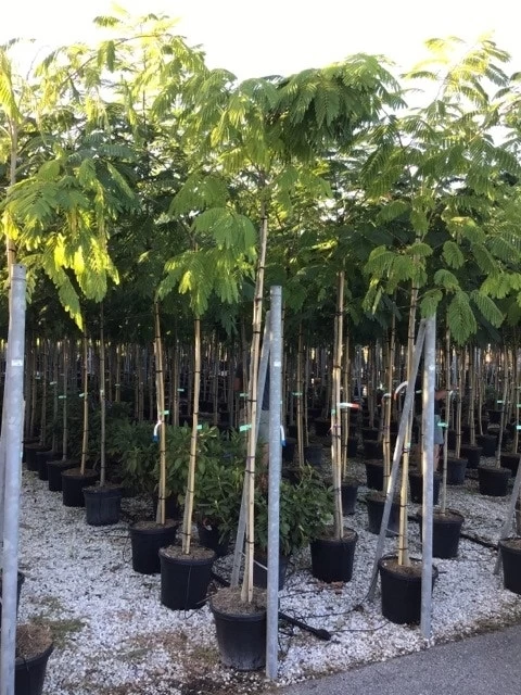 Albizia julibrissin is een winterharde boom die in Nederland terecht in opkomst is. De Albizia julibrissin heeft zeer mooi samengesteld blad. De bloeiperiode is in de zomer de Albizia bloeit dan met een roze / rode bloeiwijze. Albizia julibrissin importeren wij rechtstreeks vanuit Italië, hierdoor kunnen wij de bomen zeer interessant geprijsd aanbieden! In Nederland is de Albizia ook goed winterhard. Als het donker wordt vouwen de bladeren van de Albizia julibrissin zich dicht. Ook als wij de bomen tijdens transport bij de klant uit de wagen halen zijn de bladeren dichtgevouwen, als ze weer licht zien vouwen ze zich open, een leuk gezicht bij de Albizia julibrissin.