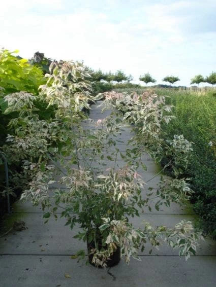 Acer negundo ‘Flamingo’ is een forse heester met witbont blad. Deze Vederesdoorn is ook als boomvorm verkrijgbaar. De jonge bladeren zijn zalmrose gekleurt, Acer negundo ‘Flamingo’ is daarom een mooie cultivar.